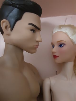 Pareja de muñecos hombre y mujer, con la ropa según fotos. Ofertas serias. - Muñeco masculino musculoso piel de tono normal, tipo Adonis. - Muñeca femenina piel de tono claro. - Se pueden vender individualmente. - Caja aparte, sin pedestal.