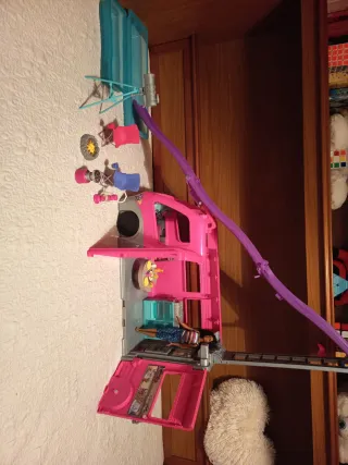 Fantástica super caravana de Barbie, ideal para horas de juego y aventuras. - Incluye accesorios para acampar. - Diseño rosa y turquesa. - Muñeca Barbie incluida.