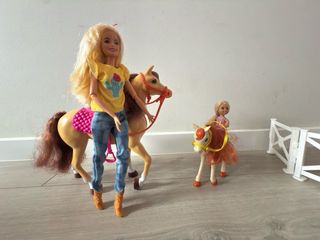 Muñeca Barbie amazona con caballo