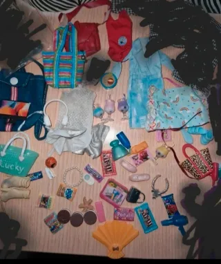 Conjunto de accesorios variados para muñecas. No entrego en mano. Solo envio. - Bolsos de diferentes estilos y colores. - Ropa para muñecas, incluyendo vestidos y trajes de baño. - Calzado variado. - Accesorios de comida y bebida. - Joyería y otros complementos. LOTE COMPLETO. NO SEPARO ARTICULOS⚠️.NO LO VENDO POR MENOS. Collar de perlitas no disponible. El vestido plata está algo enganchado. Tiene 30 años. Lo demás en buen estado.LOTE COMPLETO. NO SEPARO ARTICULOS⚠️.NO LO VENDO POR MENOS. #barbie #mariko #girlgeneration #barbiefilles #chicasdehoy #juguetes90 #juguetes #barbiechealsea #barbienicole #barbiesport #barbiesussie #b