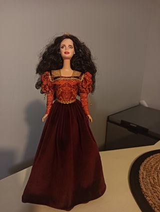 Preciosa muñeca Barbie edición Portugal. Se encuentra en buen estado, aunque le faltan los zapatos. - Muñeca de colección. - Vestido de terciopelo rojo y detalles dorados. - Pelo negro y largo.