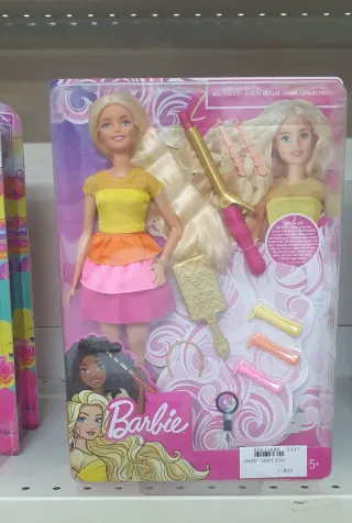Muñeca Barbie con varios accesorios para peinar y crear looks. - Incluye rizador, cepillo y pinzas. - Diseños de moda y coloridos.