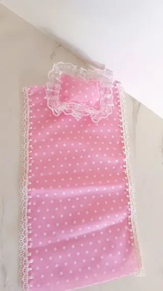 Colcha y cojín para muñeca Barbie 30 cm