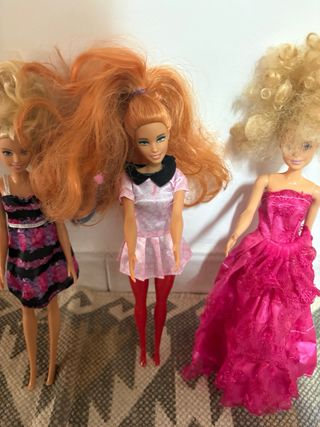 Gran lote de muñecas y accesorios. - Incluye muñecas Barbie, Ken, Kelly, Nancy, Sailor Moon. - Gran variedad de ropa y complementos. - Accesorios como bolsos, zapatos y peines. Y todos los complementos de Barbie repostera, Kelly Varicela, Nancy embarazada... - Incluye cama, lavabo, WC y muchos accesorios más. 💡 Si te interesa algún muñeco o accesorio por separado, pregúntame. ¡Pueden venderse individualmente!