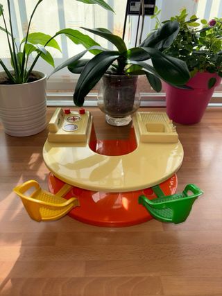 Un divertido tiovivo musical de la marca Barriguitas, ideal para coleccionistas de juguetes vintage de los años 70 y 80. La caja muestra el diseño original y el tiovivo tiene un colorido diseño. - Tiovivo musical. - Muñecos no incluidos - Diseño vintage de los años 70/80.