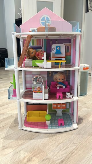 Casa de muñecas de Barriguitas, modelo Edificio Loco. Ideal para coleccionistas o para jugar. - Incluye varias plantas y habitaciones. - Viene con accesorios y muñecos. Se regala Nancy enfermera.