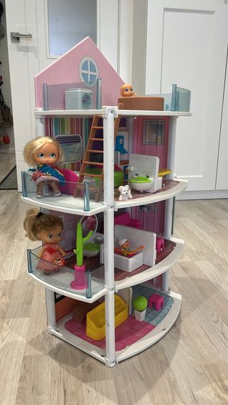 Casa de muñecas Barriguitas con varios niveles y accesorios. - Incluye figuras y mobiliario. - Diseño colorido y detallado. - Ideal para coleccionistas y juego infantil.