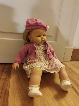Vendo preciosa muñeca de la prestigiosa marca Antonio Juan (Made in Spain). Características: -Marca: Antonio Juan (Original). -Mecanismo: Es interactiva. Al apretarle la barriguita dice "Mamá", "Papá" y se ríe. Funciona perfectamente. -Ropa: Conserva su conjunto original de gran calidad: vestido de flores, chaqueta de punto rosa, boina a juego y zapatitos. Estado: Impecable. El vinilo tiene ese tacto especial de la marca y el pelo está suave y con sus tirabuzones perfectos. Ideal para coleccionistas o regalo especial. 📦 Hago envíos protegidos.