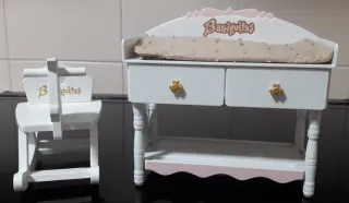 Conjunto de muebles para muñecas Barriguitas. - Tocador blanco con dos cajones y detalles en rosa. - Silla blanca a juego. - todo original barriguitas A RECOGER EN ALICANTE CAPITAL TENGO MAS COSAS EN MI PERFIL