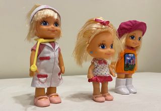 Dos Barriguitas News. En bastante buen estado, pelo sedoso y sin enredos. La morena tiene un poco de desgaste en la pintura de los zapatos. (ver fotos) También se incluyen dos bebés adorables Baby Doll Lovely. Como nuevos.