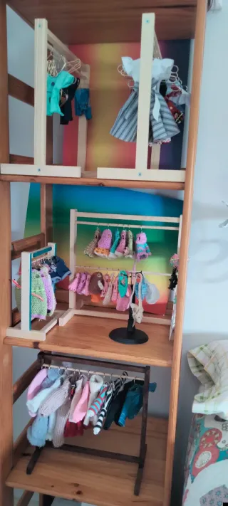 Organizado y sencillo. Precio: •Set de 10 perchas - 9€ •Perchero de 30 cm -14€ El Regalo ideal para organizar la ropa de muñecas Blythe, Nancy, Mariquita Pérez, Barbie y otras similares. También tengo perchas y percheros más pequeños para tamaño de muñecos barriguitas.