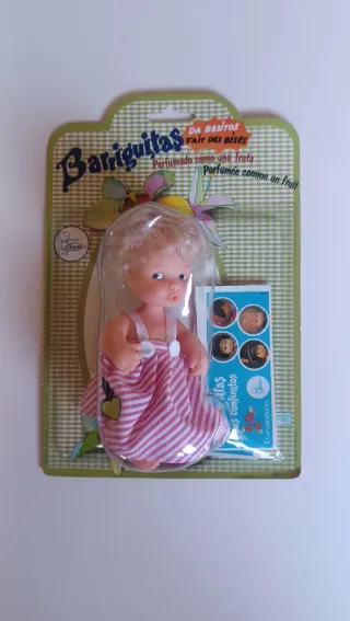 Muñeca Barriguitas de la colección Besitos. Viene perfumada como una fruta, olor manzana. Lleva dos catálogos en su interior, parece ser error de fábrica. Blíster muy nuevo y bien cuidado. Ideal para coleccionistas, no te puede faltar. NO ENVÍO POR GLS o AGENCIAS. Cualquier duda consultar.