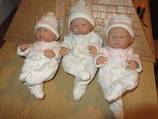 Preciosos muñecos mellizos de los años 90, de la marca "Berenguer", ideales para jugar o coleccionar, con bata de baño. Son niño y niña y están nuevos. Se venden juntos. Miden unos 22cm sentados y unos 33-34cm de pie. > Si es para algún regalo de Navidad de un peque, se puede enviar envuelto.