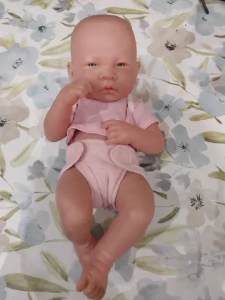 Muñeco bebé reborn con cuerpo articulable. - Cuerpo articulable para diferentes posturas. - Aspecto realista. - Con ropa de bebé de verdad - Con pulsera recién nacido Mide 50 cm Marca Berenguer