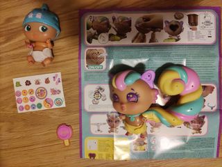 The beasties bellies, hace sonidos y mueve la cola 360 grados, con su piruleta y sus pegatinas. minibellie, mini bobby boo los 2 muñecos por 8€