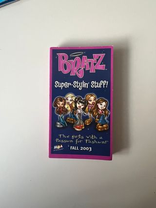 Folleto promocional de Bratz Super-Stylin' Stuff! de la colección Otoño 2003. - Presenta a las muñecas Bratz. - Incluye el lema The girls with a Passion for Fashion!. - Logo de MGA Entertainment.