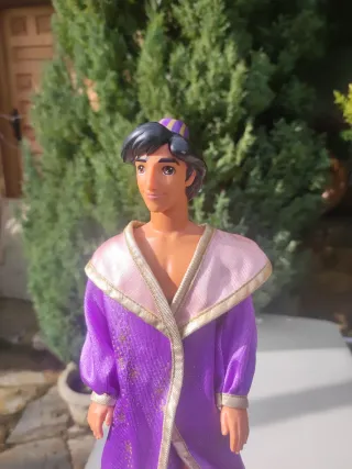 Muñeco de Aladdin de la marca Mattel. - Con tunica morada con detalles dorados. - Coleccionismo. Está tal y como se ve en las fotos. * Caja cartón altillo taller