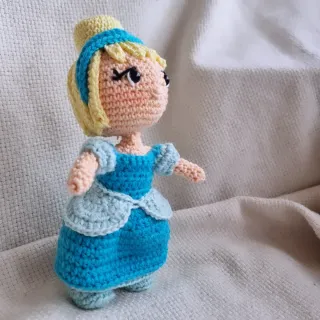Adorable muñeca de Cenicienta hecha a mano con ganchillo. - Diseño detallado del personaje. - Ideal para coleccionistas o como regalo.