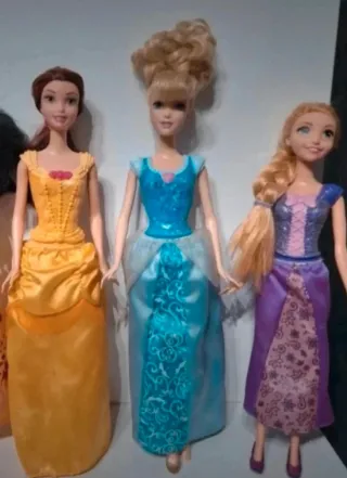 Set de muñecas de las Princesas Disney. Incluye 7 muñecas o por separado - Muñecas con vestidos detallados y zapatos. - Cada muñeca representa a una princesa. - Ideales para coleccionar o jugar. -Bella,Rapunzel,Jasmine,Ariel,Cenicienta,Aurora y Tiana. Precio 60€ Todas /10€ unidad