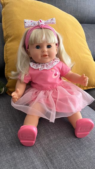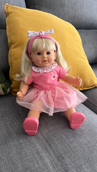 Muñeca de la marca Corolle con un bonito vestido rosa. En perfectas condiciones. Sin caja Aun tiene su olor original. Ha estado en una estanteria. - Abre y cierra los ojos - Vestido rosa con detalle de cisne. - Falda de tul. - Diadema con lazo Precio original 65€