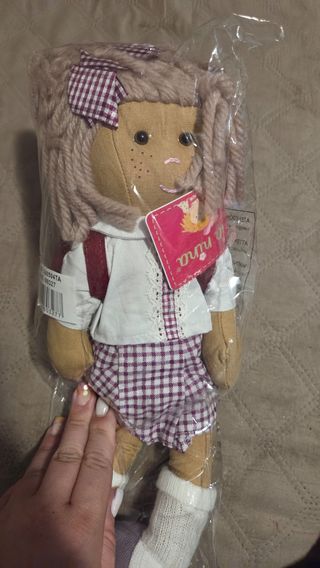 Muñeca estilo antiguo de la Tienda Así. 36 cm de largo. Cuerpo de trapo, piernas, brazos y cabeza de plástico. Nueva nunca usada , no han jugado con ella. ha estado en una estanteria desde el 1º dia.