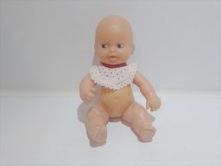 Muñeco vintage / antiguo, tamaño pequeño, modelo clásico, muy similar a la línea Barriguitas Retoño o los Mini Nenuco de los años 80 y 90. uerpo blandito y extremidades de vinilo suave. Ojos azules fijos y boca con forma de "o". En buen estado. Se puede enviar o recoger en Tienda Solidaria Piel de Mariposa BARCELONA C/ Torrent de l'olla 100 (+ info en la última foto)
