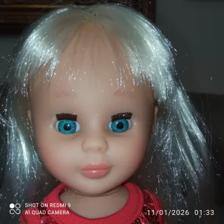 Muñeca de gran tamaño, ideal para coleccionistas o como juguete.le falta un zapatito de ahí el precio - Altura de 105 cm. - Vestido azul brillante.