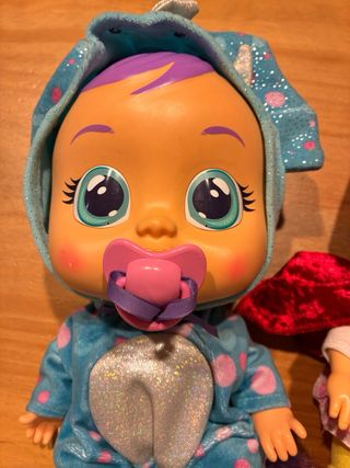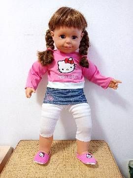 Preciosa muñeca Bebé Llorón vestida de Hello Kitty. Está en perfecto estado. - Lleva un bonito conjunto blanco con lunares rojos. - Incluye chupete. - Ideal para niñas a las que les gusten las muñecas.
