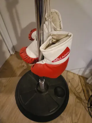 Muñeco hinchable para practicar boxeo, con diseño de rayas rojas y blancas. Incluye guantes. - Marca: Moov'ngo - Diseño: Rayas rojas y blancas - Incluye: Guantes de boxeo