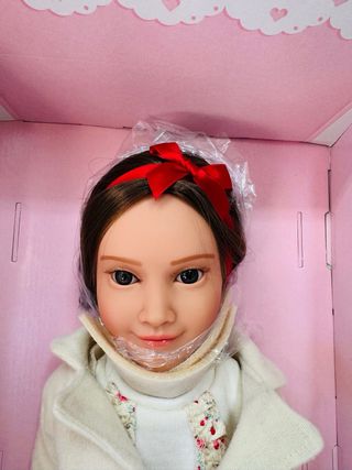 Muñeca Alaska Senior de Mariquita Pérez, presentada en su caja original. - Muñeca de colección. - Incluye vestido y abrigo. - Detalle de lazo rojo en el pelo.