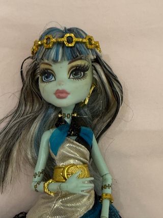 Muñeca Monster High de Cleo De Nile. - Muñeca con vestido dorado y azul. - Incluye bolso con forma de pirámide. Totalmente nueva. Cambio por Frankie de la misma colección y en las mismas condiciones solo a gente de Madrid.