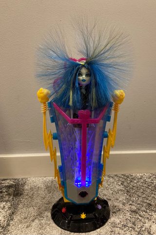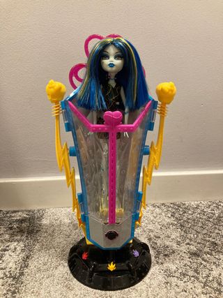 Muñeca Frankie Freaky Fusion Monster High en perfecto estado, la cabina funciona a la perfección como se puede observar en la imagen, con la caja original