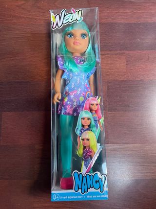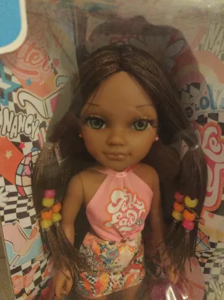 Muñeca de la marca Nancy con un diseño vibrante y moderno. Perfecta para coleccionistas o para jugar.