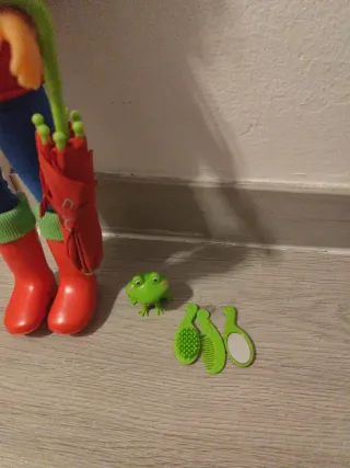Muñeca Nancy Un día de lluvia. - Incluye paraguas rojo. - Botas de agua rojas. - Pequeño amigo rana. - Accesorios de peinado.