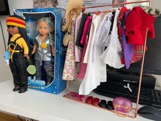Perchero con ropa para nancys, toda la ropa es para las nancy y se incluye: accesorios, ropa, zapatos, perchas y las 2 Nancy disco y Selene con luz pero irá sin pilas. Los vestidos se incluyen uno de Marilyn desayuno con diamantes, otro de Roberto Verino, Juanjo Oliva.. y más… Las 2 nancys tienen sus cajas correspondientes y certificado. Se envia bien protegidas 📦 y por impost o venta en persona. Regalo para cumpleaños.. o para coleccionistas. Tambien tengo más lotes, por si quieres echar un vistazo a mi perfil.. nana Surprise, polly pocket, nancy, bratz, barbie, Disney, monster high, Rainbow high, pinypon, lego, playmob