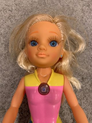 Muñeca Nancy con traje de baño rosa y amarillo. - Pelo rubio. - Ojos azules. - Zapatos rosas. - Tal como se ve en la foto.