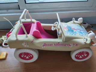 Todoterreno de Nancy, modelo Aventura Marítima. Un vehículo divertido para tus muñecas. - Diseño en color crema y rosa. - Detalle de flores y el nombre Nancy en el frontal. - Ruedas blancas y detalles naranjas en los faros. - Animales con accesorios también incluidos.