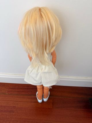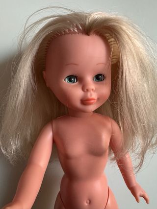 Muñeca Nancy antigua de pelo rubio. - Ojos azules. - Pelo rubio. - Cuerpo de plástico. Pelo brillante sin cortes, maquillaje de origen sin retoques. Las fotos forman parte de la descripción, cualquier duda preguntar. Se puede mandar por correo certificado. Acepto pagos por Bizum o Wallapop. No acepto devoluciones. Contacten antes de darle a comprar por favor para concretar fecha de envío
