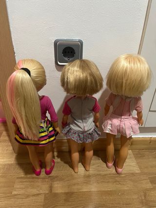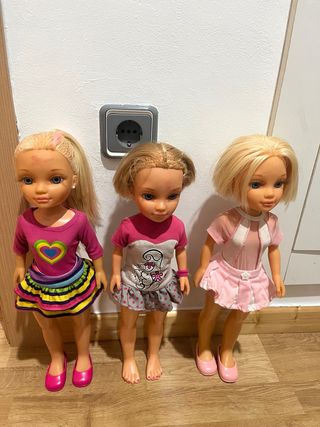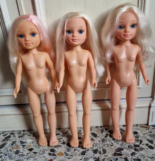 Se vende lote de 3 muñecas Nancy. - Pelo rubio, una con mechas rosas y otra en azul - Ojos azules. - Todas llevan pendientes - Pueden presentar alguna marca de uso pero en general buen estado 6€ cada una 15€ todas Hago envíos por wallapop