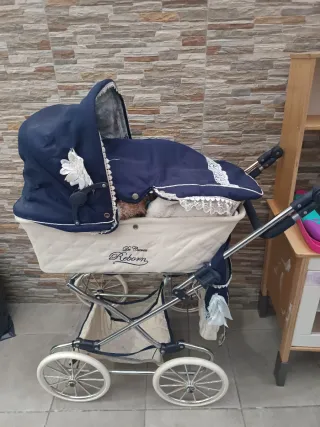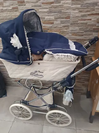 Precioso cochecito de muñecas de estilo clásico, con peluches, muñeca Nancy,pepa pig,etc - Diseño elegante con capota. - Ruedas grandes y resistentes. - Detalles de encaje y flor. - Marca: De Cuevas Reborn.