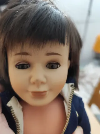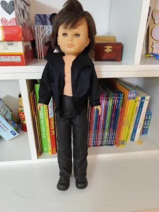 Muñeco Lucas de la famosa Nancy, con su característico pelo castaño y ojos azules. - Viste chaqueta negra y pantalones negros. - Incluye zapatos negros.