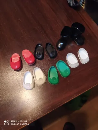 Lote de zapatos para muñeca Nancy. - Zuecos rojos. - Zapatos negros. - Zapatos blancos dos pares - Zapatos verdes. - Botas negras.