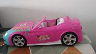 Se vende en Barcelona ciudad o Palamós. Coche descapotable rosa de Nancy, inspirado en un día en California. Ideal para jugar. - Diseño deportivo y llamativo. - Detalles de palmeras y California en los laterales. - Ruedas plateadas. - Interior blanco y negro.