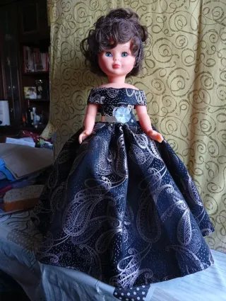 Preciosa muñeca Nancy reedición en perfecto estado con una divina Bata de cola de encaje negra confeccionada artesanalmente y sus complementos a juego. Es una maravilla ideal para la Feria de Abril. Precio muñeca completa 130€. Posibilidad de comprar el traje o los complementos por separado. Envío aparte..