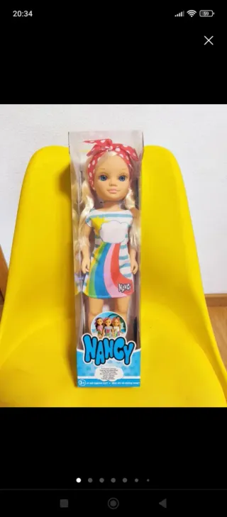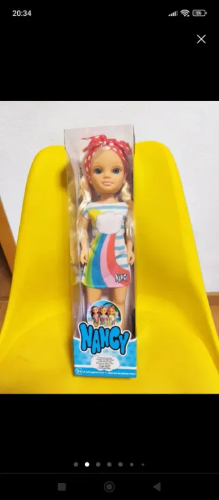 Nancy pañuelos trendy sin estrenar, viene en su caja original. - Muñeca Nancy con vestido arcoíris. Preciosa muñeca Nancy nueva a estrenar. Viene con un pañuelo a juego. ¡Ideal para regalo! - Muñeca Nancy de tamaño mediano. - Lleva un bonito vestido con arcoíris. - El conjunto incluye la muñeca y su pañuelo. - Se encuentra en perfecto estado.