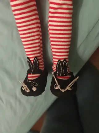 Muñeca Nancy vestida de Caperucita Roja. - Incluye vestido blanco con estampado de perros y corazones. - Chaqueta roja con capucha de pelo. - Medias a rayas rojas y blancas. - Zapatos negros con orejas de conejo. - Bolso rosa a juego.
