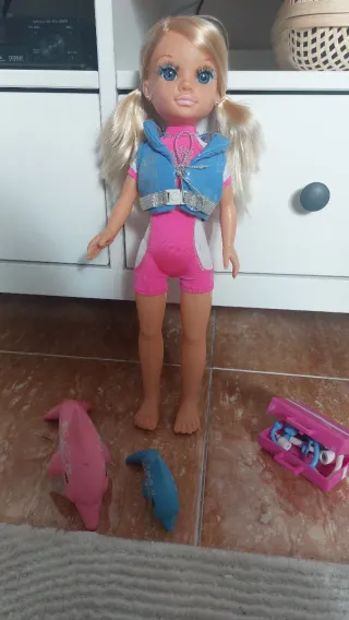 Muñeca Nancy Cuidadora de Delfines con accesorios. - Incluye dos delfines, uno rosa y otro azul. - Traje de baño rosa y blanco con chaleco azul. - Set de accesorios médicos en un maletín rosa, los accesorios son los de la foto, no hay más - No tengo caja original original - Buen estado Entrego en Getafe (El Bercial), metro Las Musas (lunes a viernes por la mañana a partir del día 12) o envíos por Wallapop