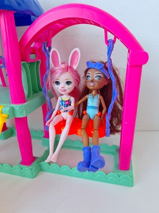 Lo que se ve en las imágenes, casa com columpio y dis muñecas. Hago envíos, más cosas en mi perfil. Palabras clave: muñeca Mattel Barbie casita animales muñequita plástico kiosko niño niña juguete Nancy Lesly peluche