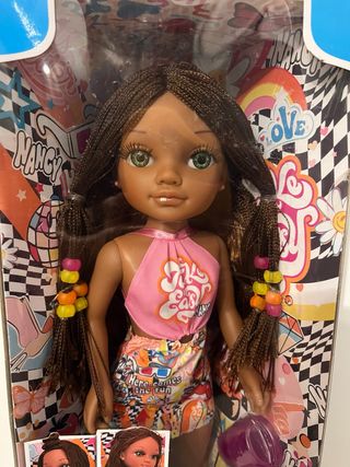 Muñeca Nancy con temática Cosmic Vibes, completamente nueva y precintada en su caja original. - Muñeca de la marca Nancy. - Diseño Cosmic Vibes con camiseta y falda. - Caja original sin abrir.