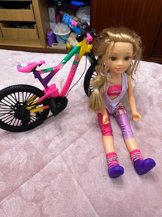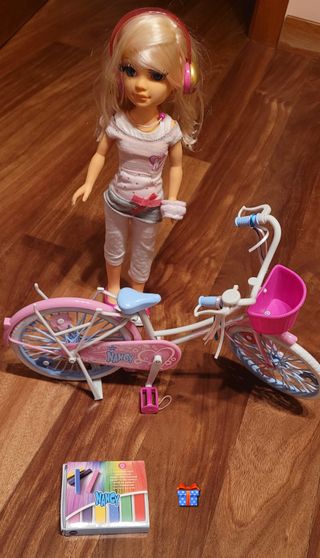 Muñeca Nancy con cascos y bicicleta + 🎁 pinturas para el pelo NO ES NEGOCIABLE ❌️